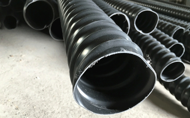 2.塑料波紋管一般為黑色,內外壁不允許有融體破裂、硬塊、嚴重氣泡等缺陷,為達到較小的摩阻系數和環剛度塑料波紋管應是間隔圓環波形的管材。